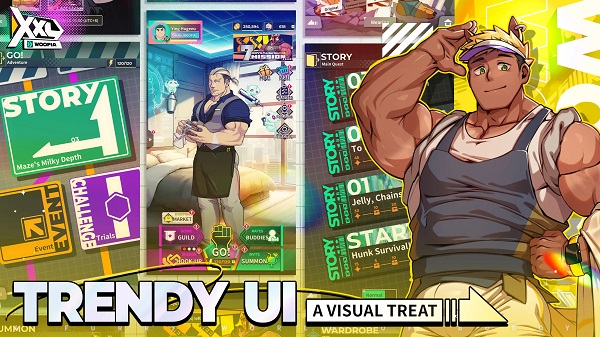 One of the most refreshing aspects of XXL Woofia APK is the daily life system known as Hunk’s Day. Instead of pushing players into endless combat, it presents quirky storylines and lighthearted moments with the characters. Whether it’s hanging out at the gym, sharing a casual conversation, or watching over-the-top comedic events, these scenes make the world feel lively. Players say this feature keeps the game from feeling repetitive because every day brings a different twist.